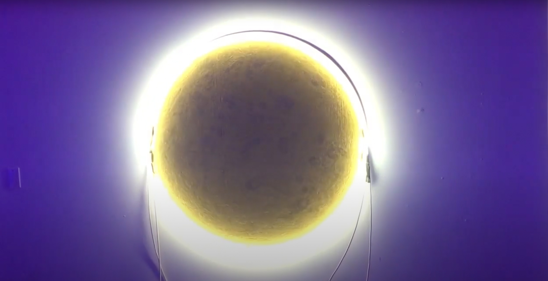 The work is an interactive immersive performance. Rhys Chatham plays solo or with a combo in his signature minimalist style. Rapahele Shirley creates site specific light sculptures and GH Hovagimyan controls the lights via a custom interface using gestural recognition. GH responds to Rhys's music via his gestures which control the Shirley's lights. The audience is all around or views the work from a platform above the players. The work is in production and is made to be customized for each performance/installation.